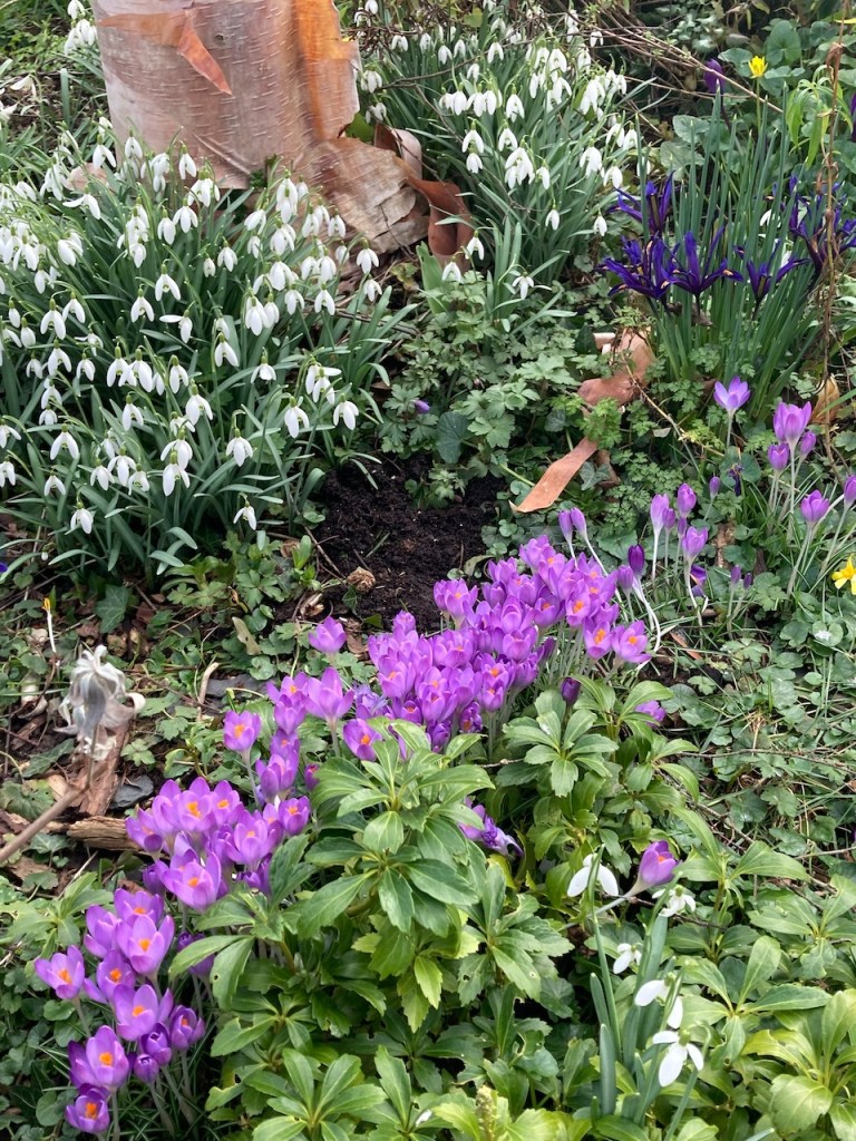 Another thing to consider when planting bulbs are their companions; the plants that will look good next to them. So see what else might be of interest at that time of year. Christmas box (Sarcococca), leathery leaved Hellebores and the marble leaved Arums looking at their best in late winter will provide a lovely foil of green to complement snowdrops and winter aconites.