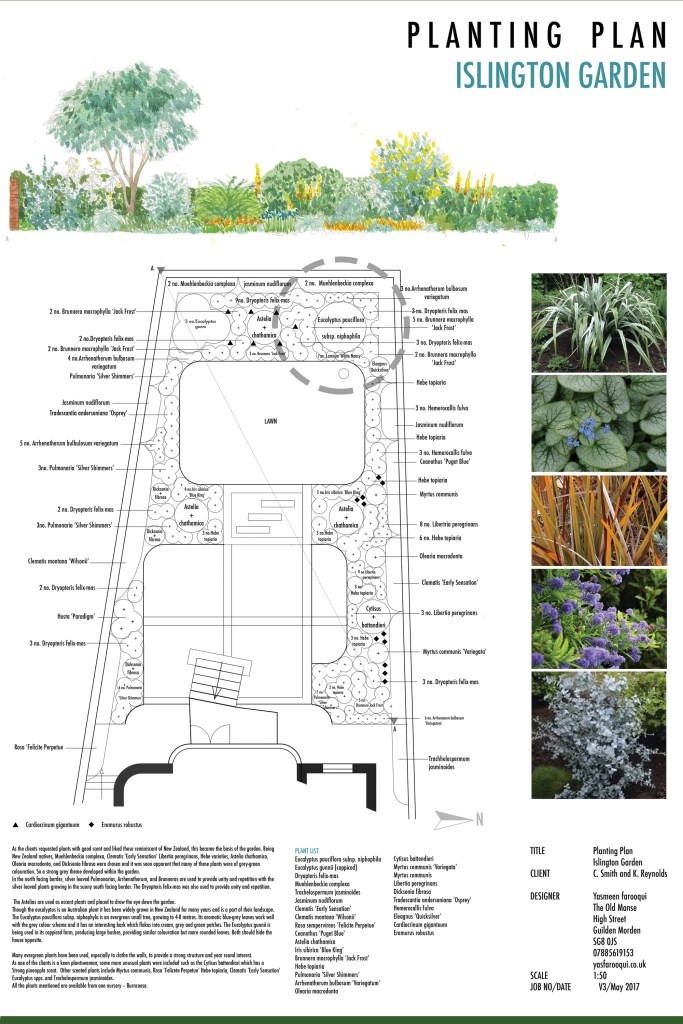 A presentation plan for a planting scheme to enhance the patio area and garden.